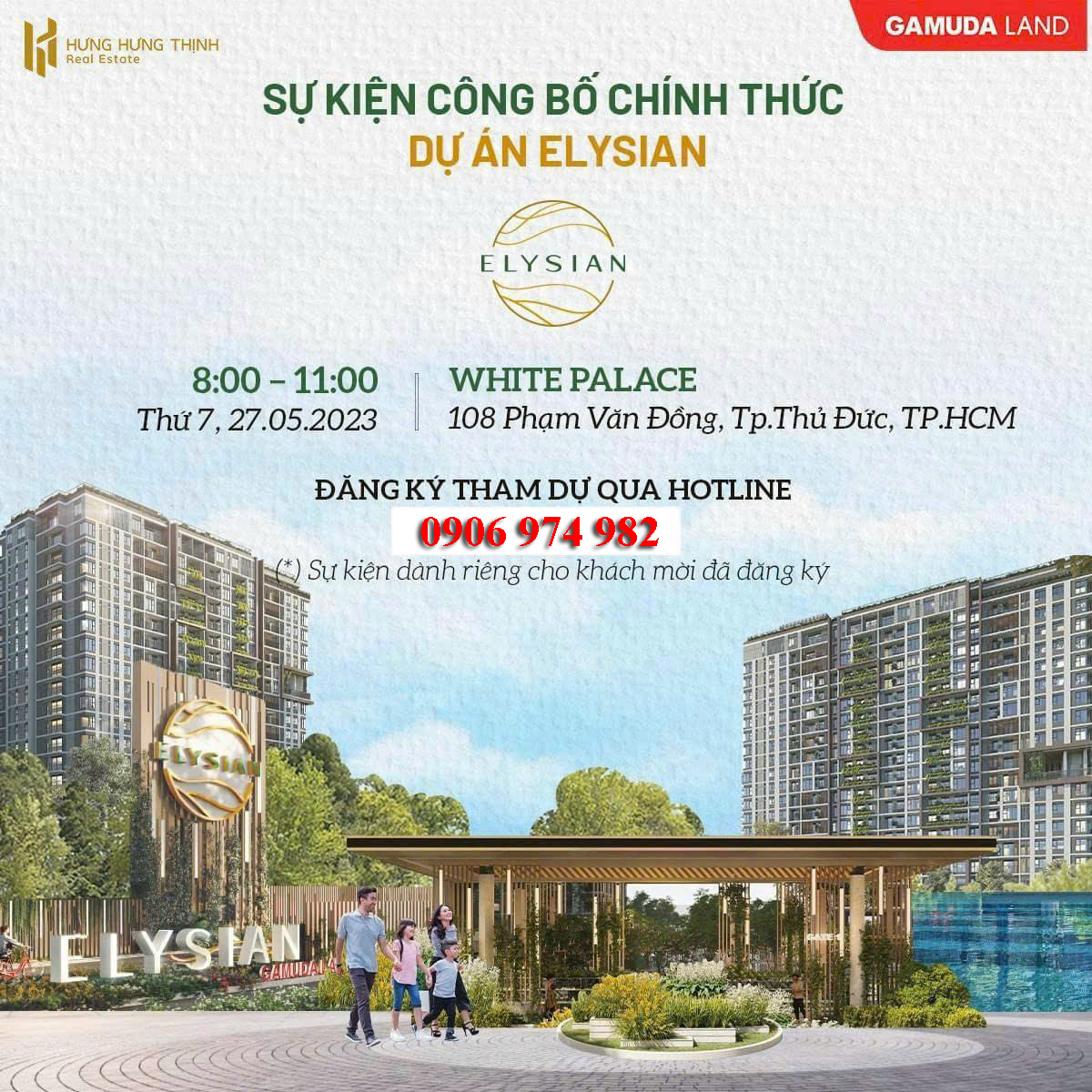 Chính thức mở bán Elysian ngày 27/05/2023 – Quý khách tham dự xin vui lòng đăng ký trực tiếp qua Hotline để được hướng dẫn và tư vấn tận tâm.