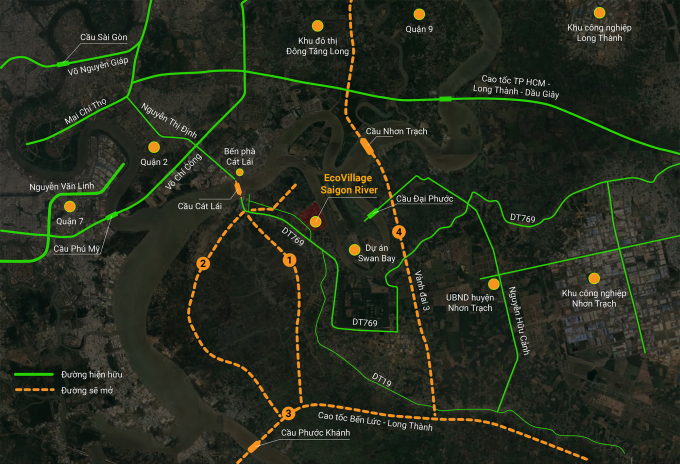 Quanh khu đô thị Ecovillage Saigon River (tại huyện Nhơn Trạch, Đồng Nai) sẽ có thêm một số cầu, đường để kết nối với TP.HCM thuận lợi hơn.