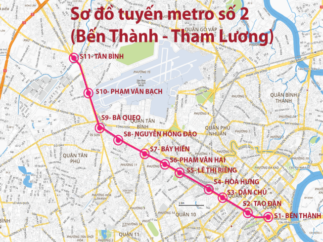Dự án metro số 2 (Bến Thành – Tham Lương) dài hơn 11 km, gồm 9 ga ngầm, 1 ga trên cao với tổng mức đầu tư gần 47.900 tỷ đồng. Theo kế hoạch, dự án sẽ hoàn thành vào năm 2026. Tuy nhiên, công tác giải phóng mặt bằng gặp nhiều khó khăn nên dự án được lùi thời gian hoàn thành đến năm 2030.
